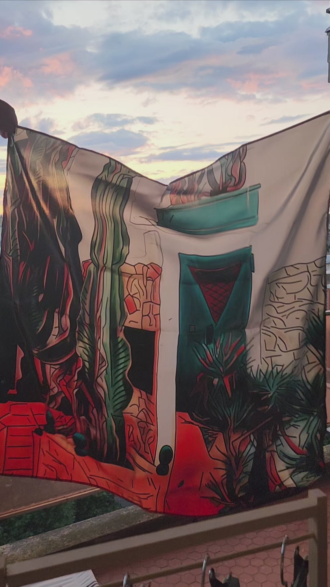 Inspiré de l’affiche "Piqué par la beauté" prise à Taghazout, au Maroc, ce foulard incarne la résilience et la force, tout en apportant une touche d’exotisme.